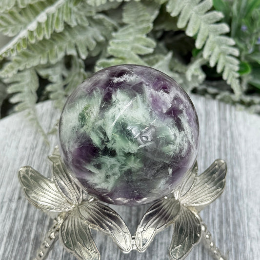 Snowflake Feather Fluorite Sphere Healing Crystal Ball 191g 49mm