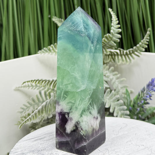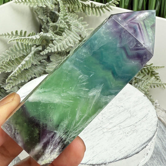 Snowflake Feather Fluorite Tower Healing Crystal Generator 195g 104mm