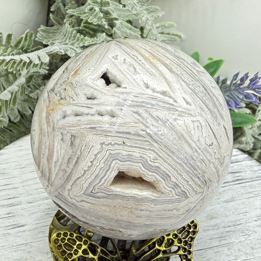 White Mexican Lace Agate Sphere Healing Crystal Ball 321g 63mm