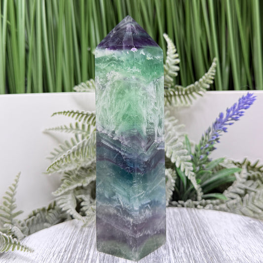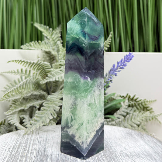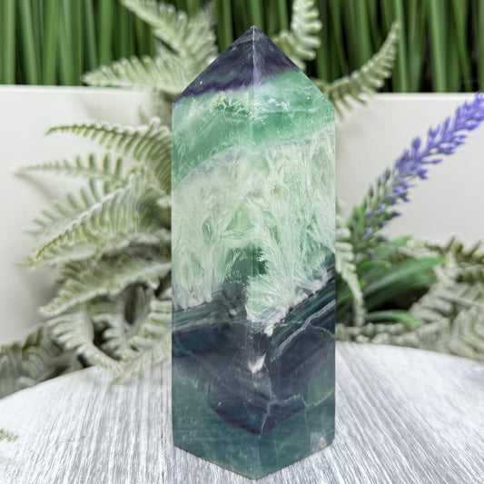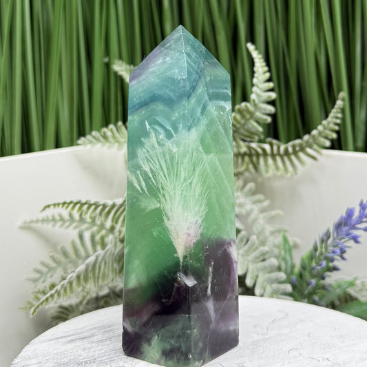 Snowflake Feather Fluorite Tower Healing Crystal Generator 268g 108mm