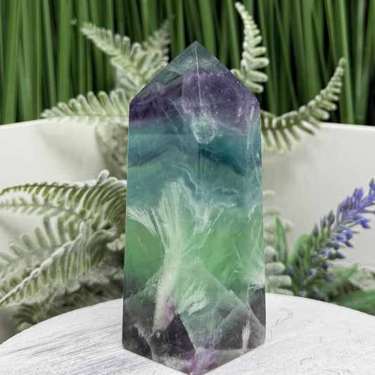 Snowflake Feather Fluorite Tower Healing Crystal Generator 249g 104mm