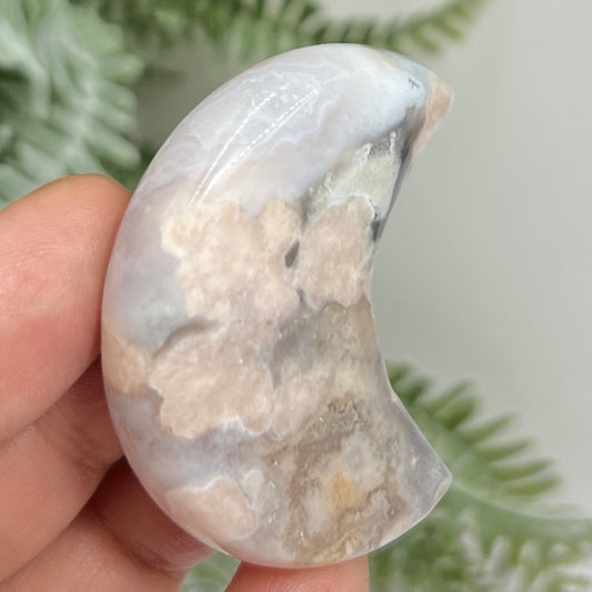 Flower Agate Moon Crescent DIY Jewellery Making Wire Wrapping Crystal Carving 44g