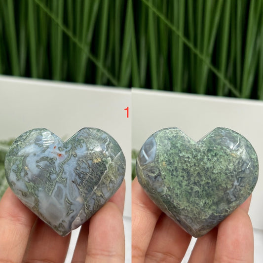 Moss Agate Hearts Crystal Carvings YOU CHOOSE