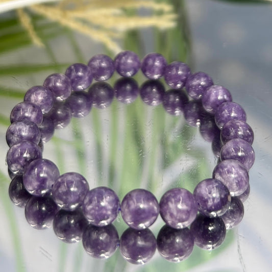Lepidolite Purple Mica Crystals Bracelets Wearable Gemstones Elastic 7-8mm Beads 16cm