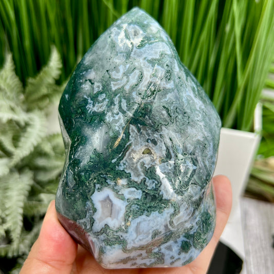 Moss Agate Quartz Druzy Flame High Quality Crystal 292g 104mm