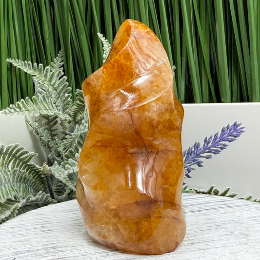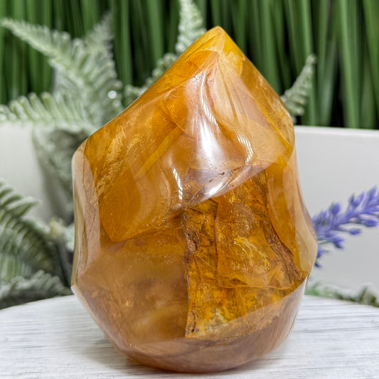 Golden Healer Quartz Crystal Flame Free Form Gemstone 358g