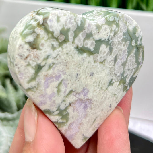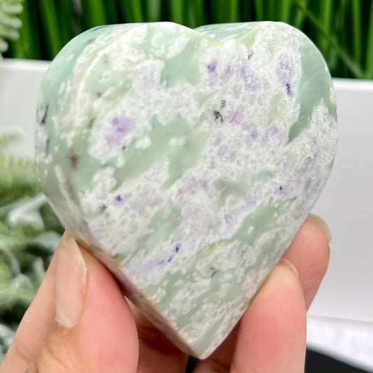 Lucky Jade Purple Stichtite Green Serpentine Heart Crystal Carving 130g