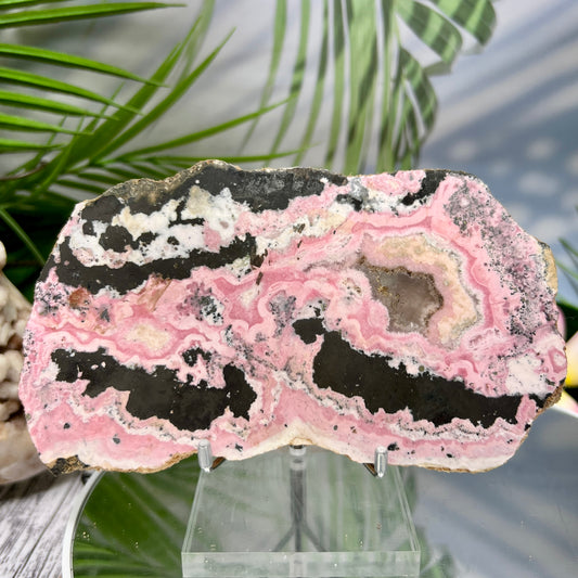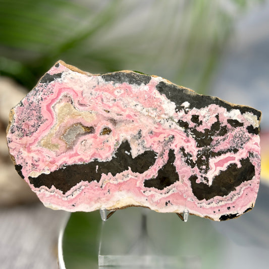 Peruvian Rhodonite Slice Slab with Stand Compassion Emotional Balance Crystal 640g