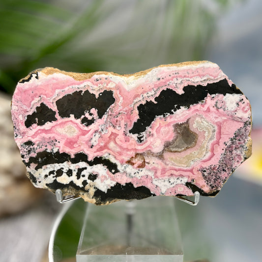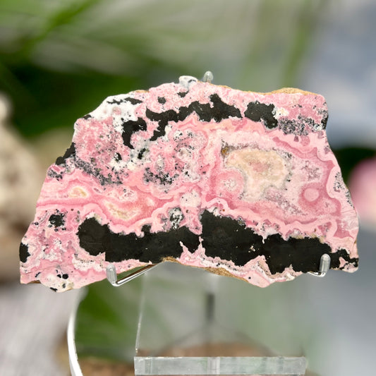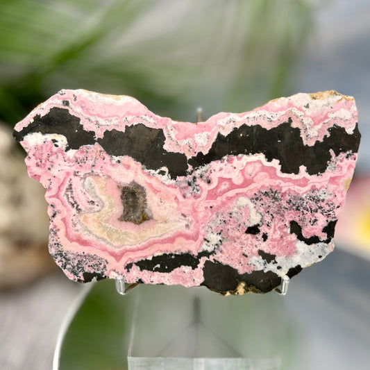 Peruvian Rhodonite Slice Slab with Stand Compassion Emotional Balance Crystal 548g