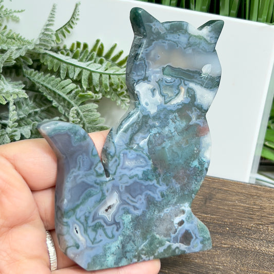 Moss Agate Kitty Cat Healing Crystal Animal Carving 144g