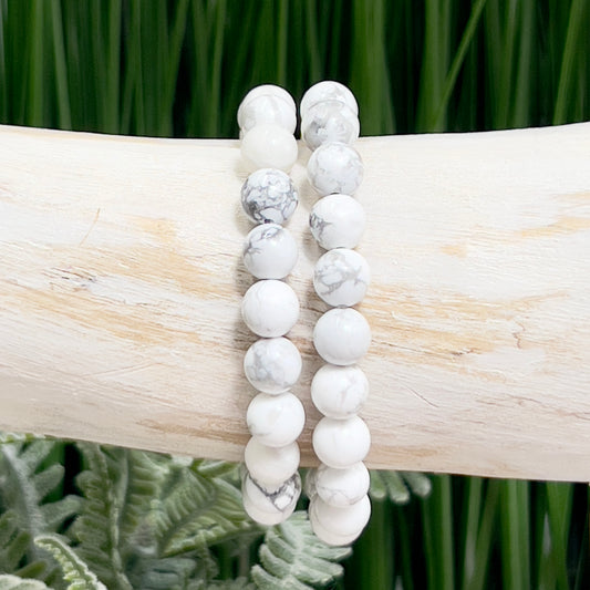 Howlite Crystals Bracelets Wearable Gemstones Elastic 8mm Beads 16cm