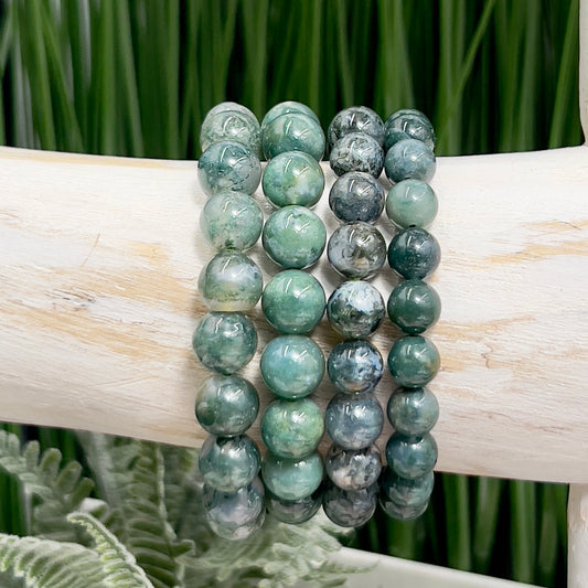 Moss Agate Crystals Bracelets Wearable Gemstones Elastic Various Beads Sizes