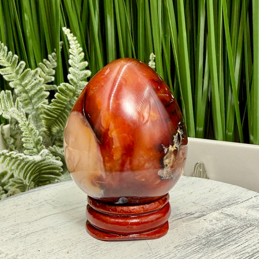 Carnelian Egg Healing Druzy Crystal with Stand 111g
