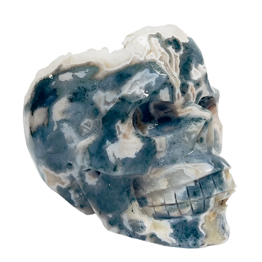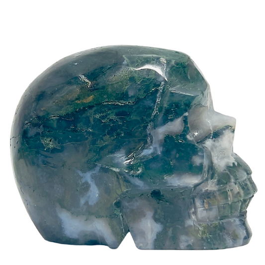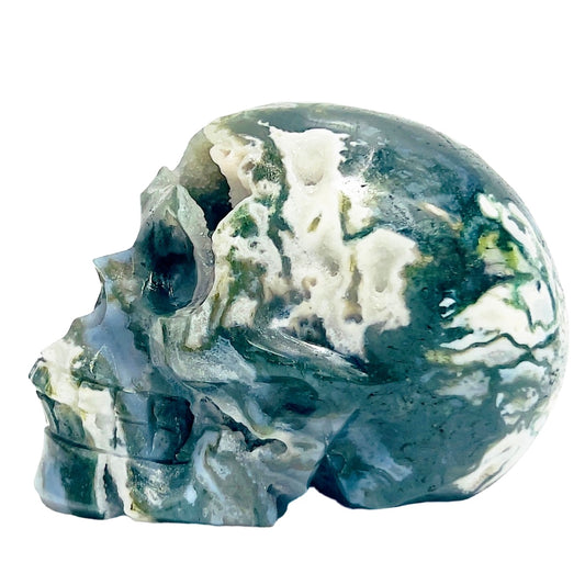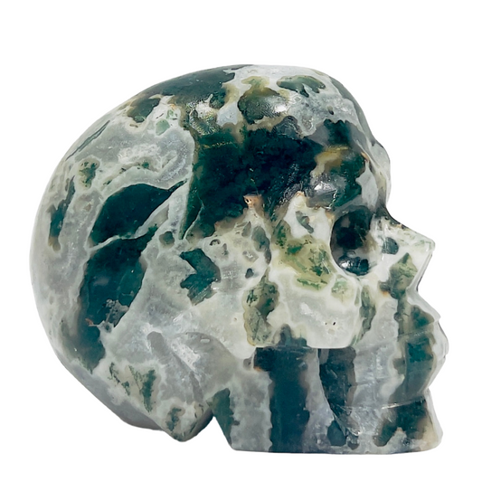 Moss Agate Eagle Bird on Skull Healing Crystal Carving 1092g