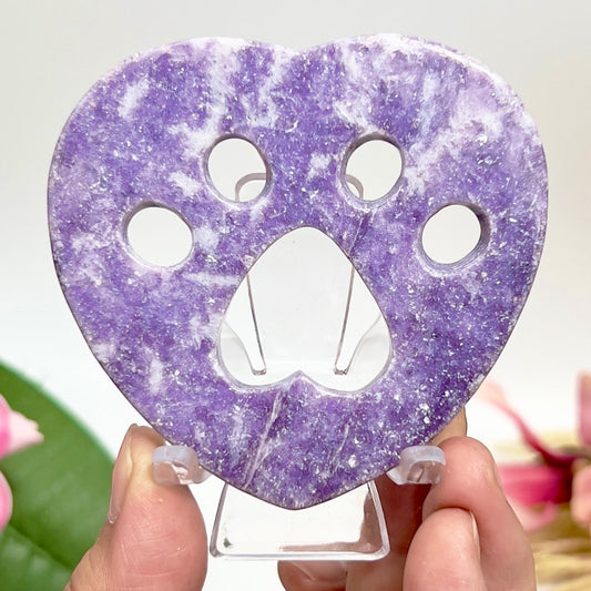 Lepidolite Purple Mica Kitty Cat Paw Heart with Stand Healing Crystal Carving