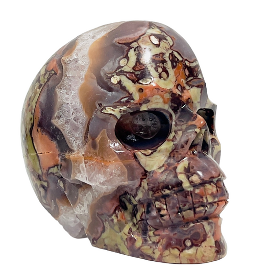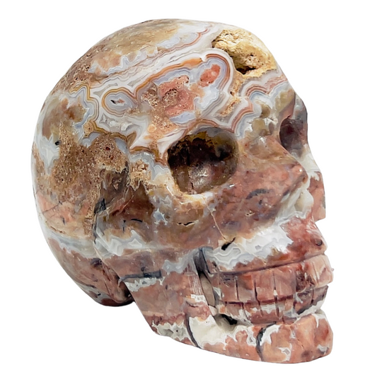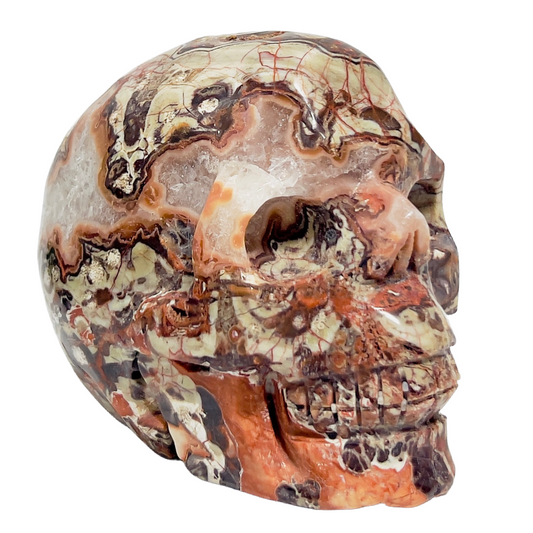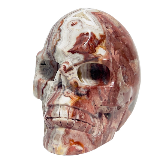 Mexican Crazy Lace Agate Skull Healing Crystal Carving 900g