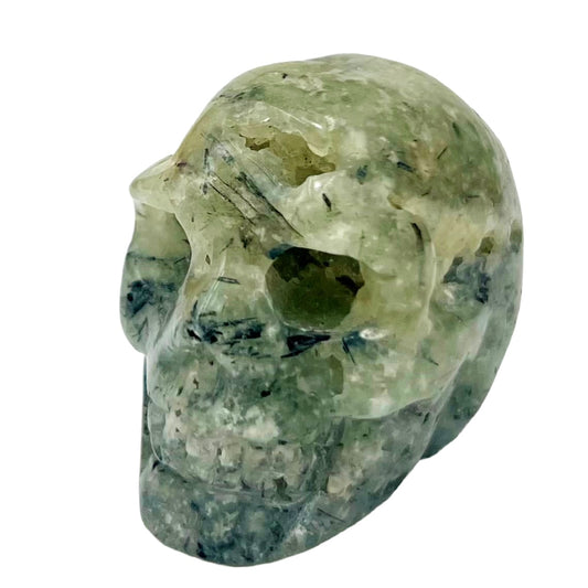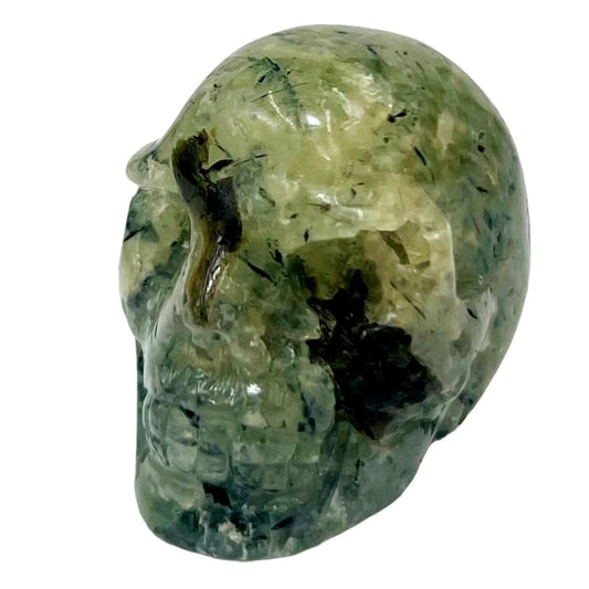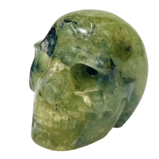 Prehnite with Epidote Skull 2 Inches Hand Carved Crystal Carving