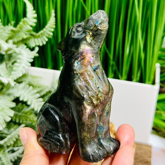 Labradorite Howling Wolf Healing Crystal Animal Carving 260g