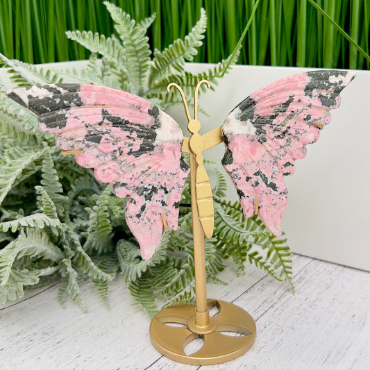 Peruvian Rhodonite Butterfly Wings with Stand Compassion Emotional Balance Crystal