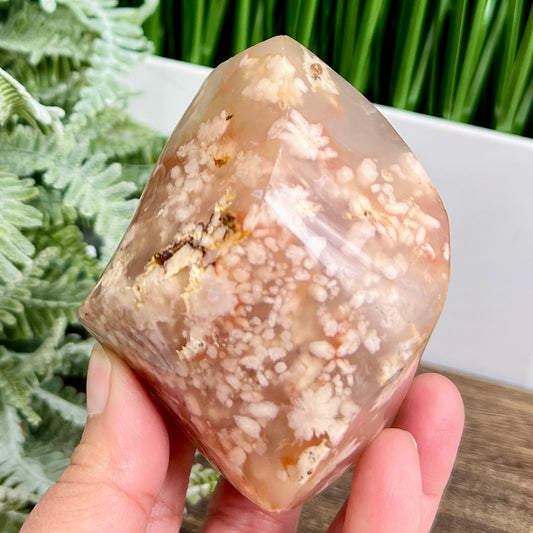 Flower Agate Flame Healing Crystal Carving 486g