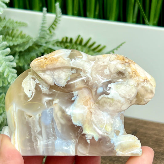 Flower Agate Bunny Rabbit Healing Crystal Animal Carving 314g