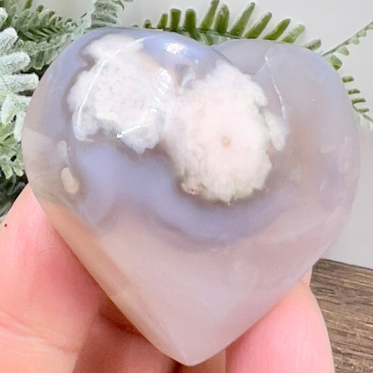Flower Agate Heart Large Healing Crystal Carving 218g