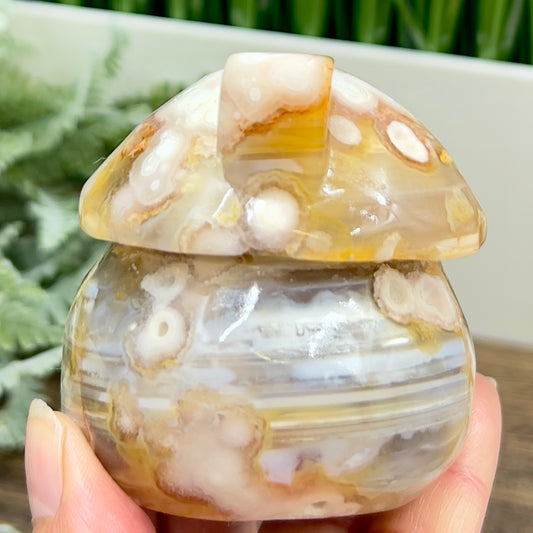 Flower Agate Mushroom House Healing Crystal Carving 340g