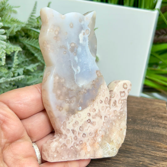 Flower Agate Kitty Cat Healing Crystal Animal Carving 182g