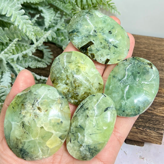 Prehnite with Epidote Palm Stones Worry Crystals YOU CHOOSE