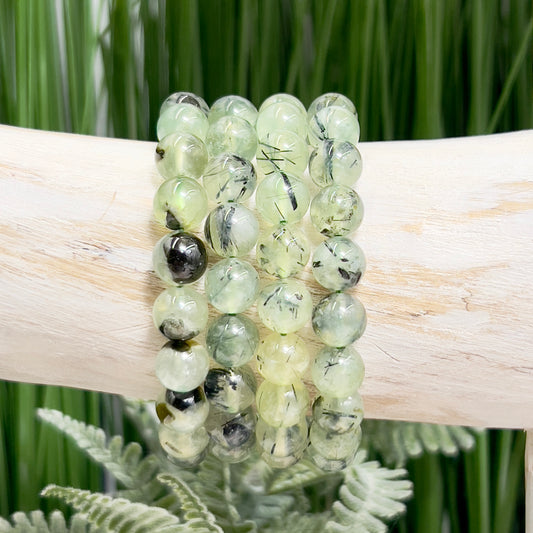 Prehnite Epidote Green Crystals Bracelets Wearable Gemstones Elastic 9mm Beads 16cm