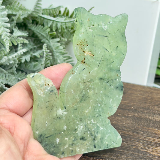 Prehnite with Epidote Kitty Cat Healing Crystal Animal Carving 160g