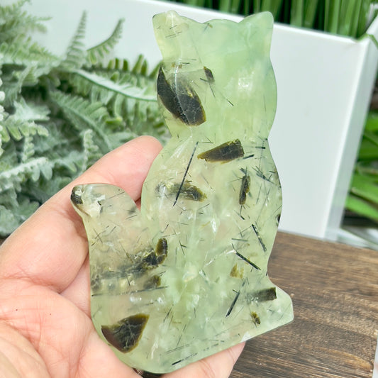 Prehnite with Epidote Kitty Cat Healing Crystal Animal Carving 187g