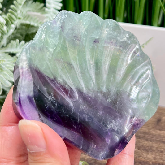 Purple Green Fluorite Shell Shaped Bowl Crystal Carving 276g