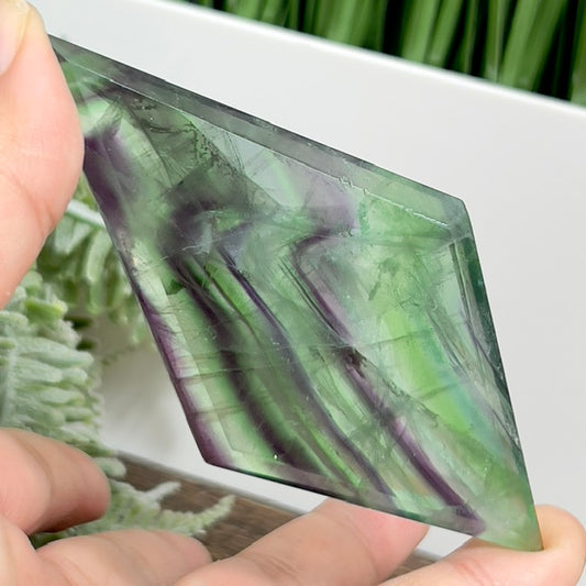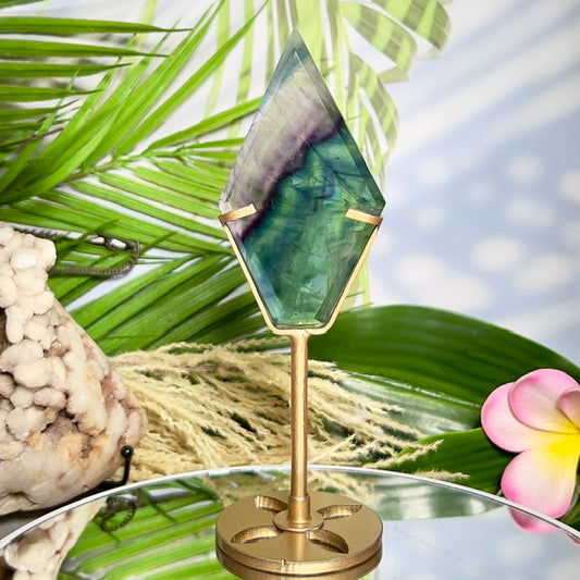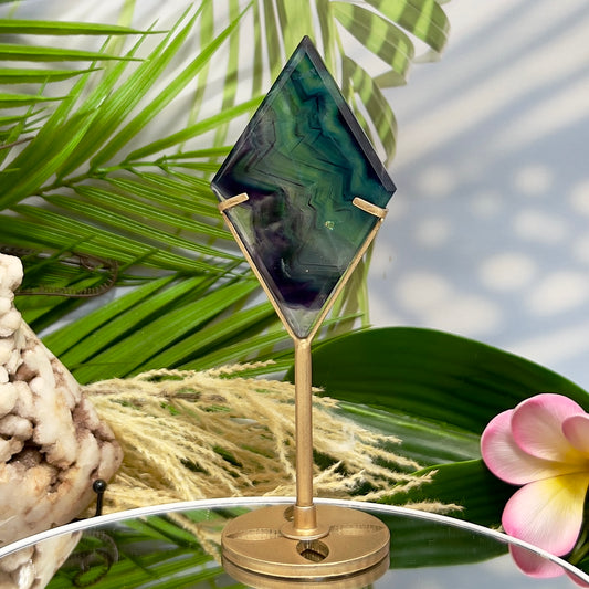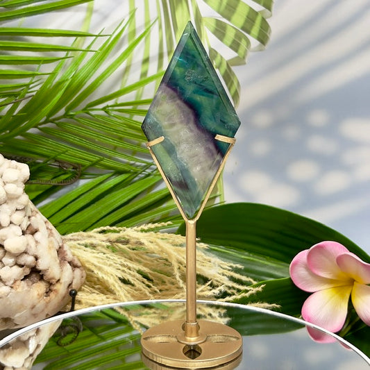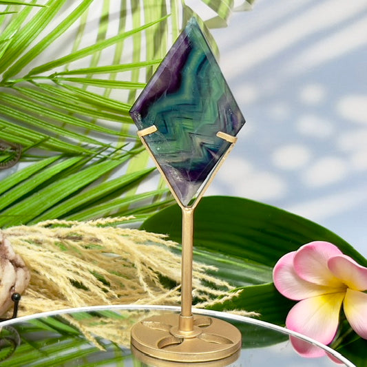 Rainbow Fluorite Diamond Rhombus on Stand Healing Crystal Home Decoration