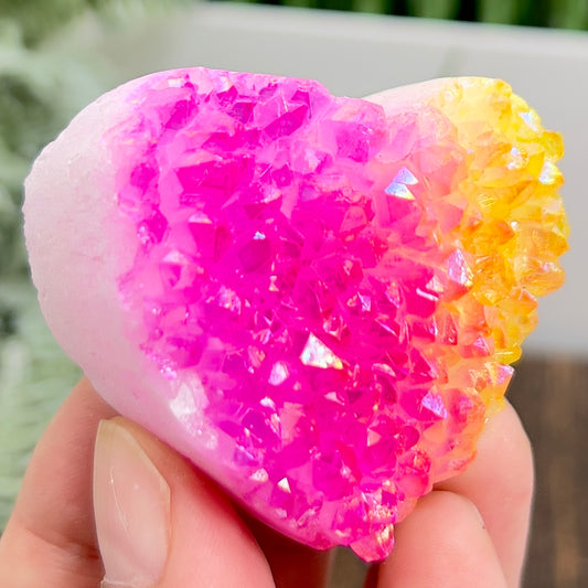 Quartz Heart with Pink Yellow Angel Aura Healing Crystal Carving 102g