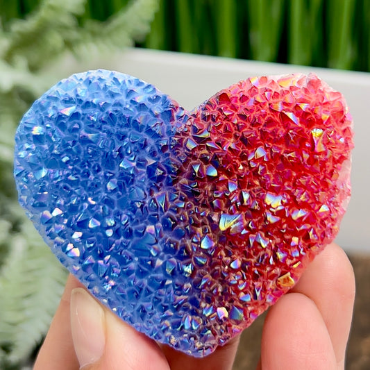 Quartz Heart Double Sided with Blue Red Angel Aura Healing Crystal Carving 146g