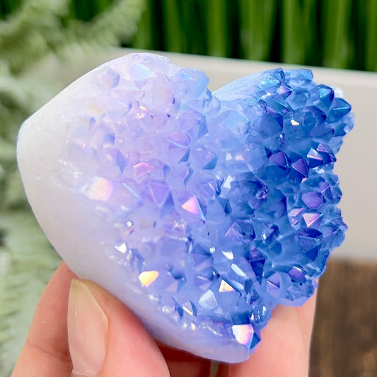 Quartz Heart with Blue Pink Angel Aura Healing Crystal Carving 134g