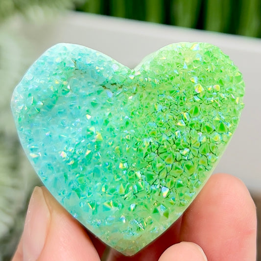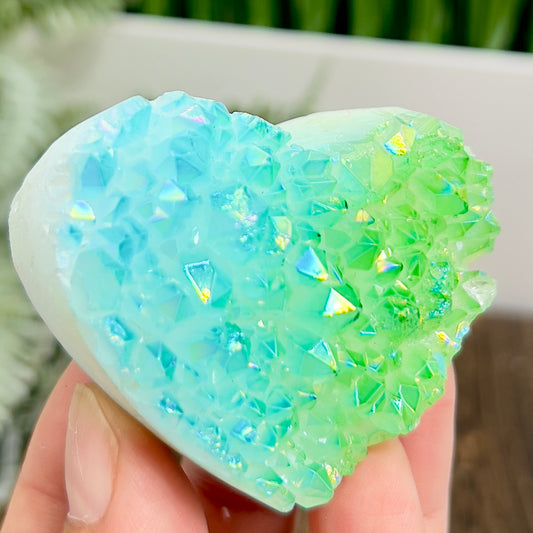 Quartz Heart with Blue Green Angel Aura Healing Crystal Carving 126g