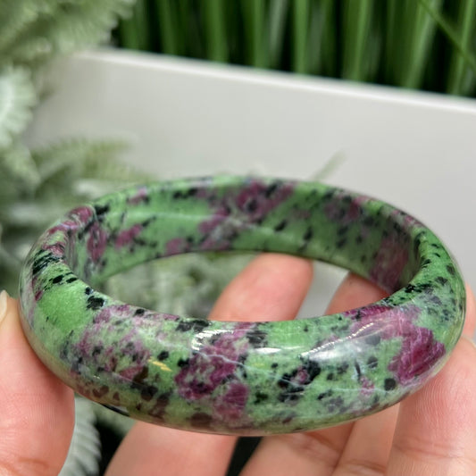 Ruby in Zoisite Bangle UV Reactive Gemstone Jewellery Crystal 62mm Diameter