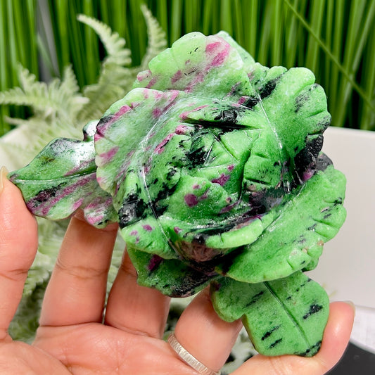 Ruby in Zoisite Lotus Flower UV Reactive Healing Crystal Carving 430g
