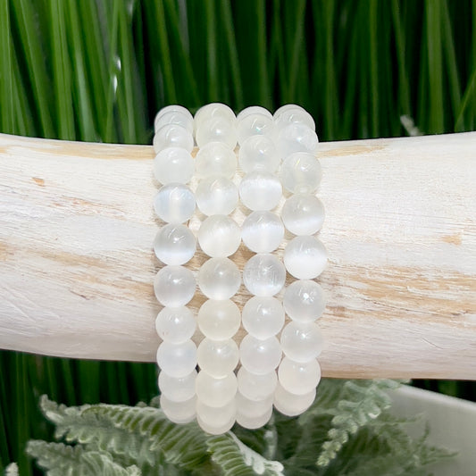 Satin Spar Selenite Crystals Bracelets Wearable Gemstones Elastic 8mm Beads 16cm