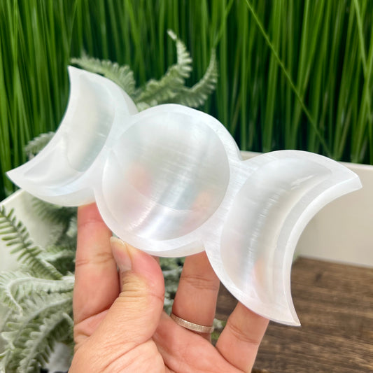 Satin Spar Selenite Moon Phases Bowl Crystal Carving 250g