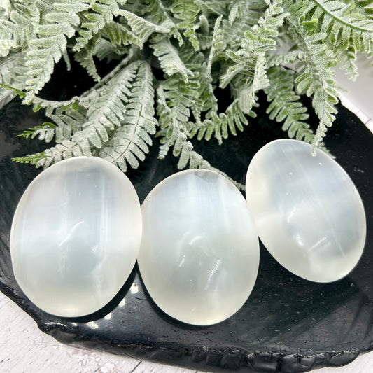 Satin Spar Selenite Palm Stones Worry Crystals Morocco YOU CHOOSE