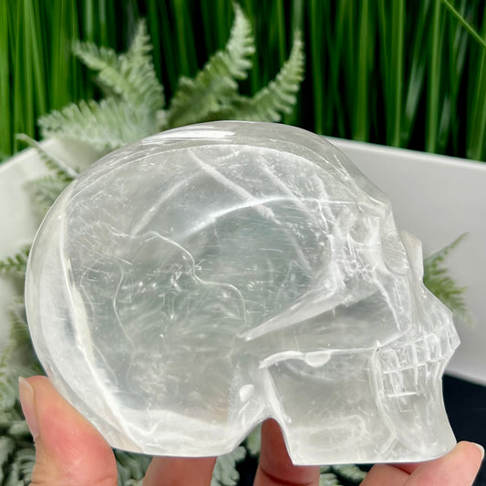 Satin Spar Selenite Skull Top Quality Translucent Crystal Carving Morocco 744g