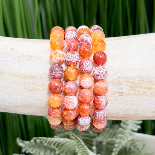 Snake Skin Agate Crystals Bracelets Wearable Gemstones Elastic 7-8mm Beads 15cm