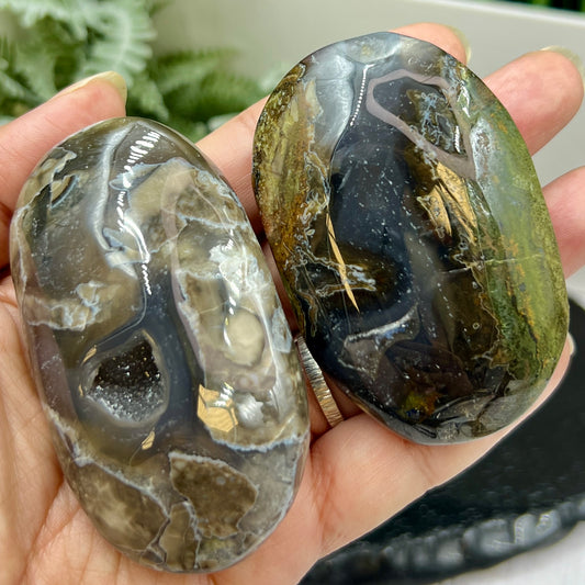 Volcanic Agate Quartz Palm Stones UV Reactive Crystals YOU CHOOSE