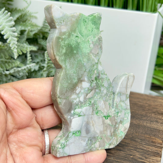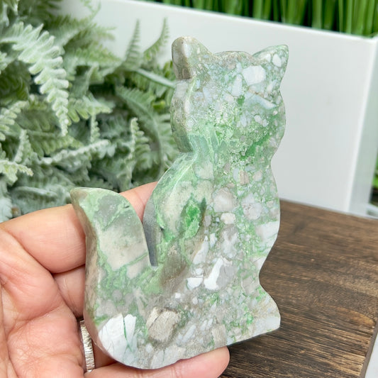 Variscite Utahlite Kitty Cat Healing Crystal Animal Carving 160g