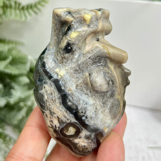 Volcanic Agate Human Heart UV Reactive Crystal Carving 174g