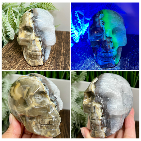 Volcanic Agate Quartz Skull UV Reactive Healing Crystal Carving 500g
