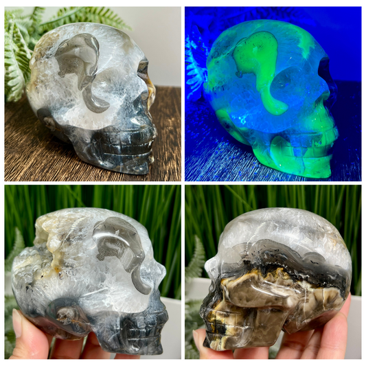 Volcanic Agate Quartz Skull UV Reactive Healing Crystal Carving 582g